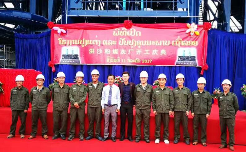 老挝粉煤灰厂选用江苏开云手机站登录入口集团制造的φ2.6×13m粉煤灰专用球磨机。老挝中央政治局常委到洪沙粉煤灰厂参加庆典并指导工作。