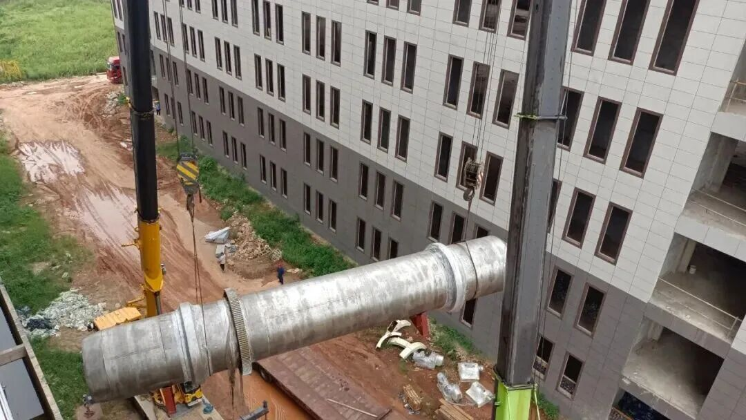 近日,中新开维绿色食品产业园项目迎来重大进展—随着三台总重达108吨的“巨无霸”回转窑炒菜锅在两台吊车精准牵引下缓缓上楼就位,中新开维绿色食品产业园15