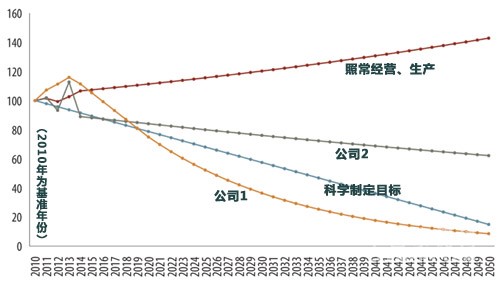 在低碳经济中生存发展,企业需要设定一套科学的发展目标,目标需要反映出巴黎协定,以及公司根据巴黎协定为其运营所在国家及资源供应地区制定的二氧化碳减排计划。这可以检讨公司现行的二氧化碳减排计划是否仍然使用。