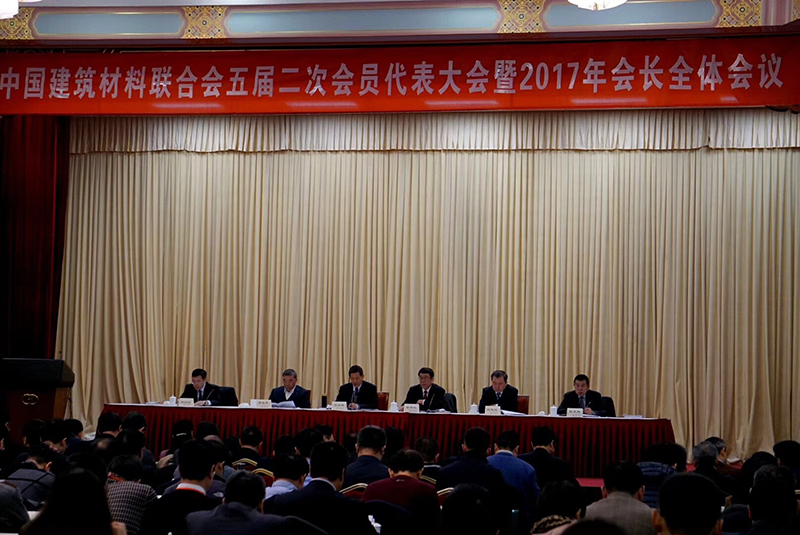 中国建筑材料联合会五届二次会员代表大会暨2017年会长全体会议于2017年12月20日在北京友谊宾馆友谊宫二楼聚英厅成功召开。