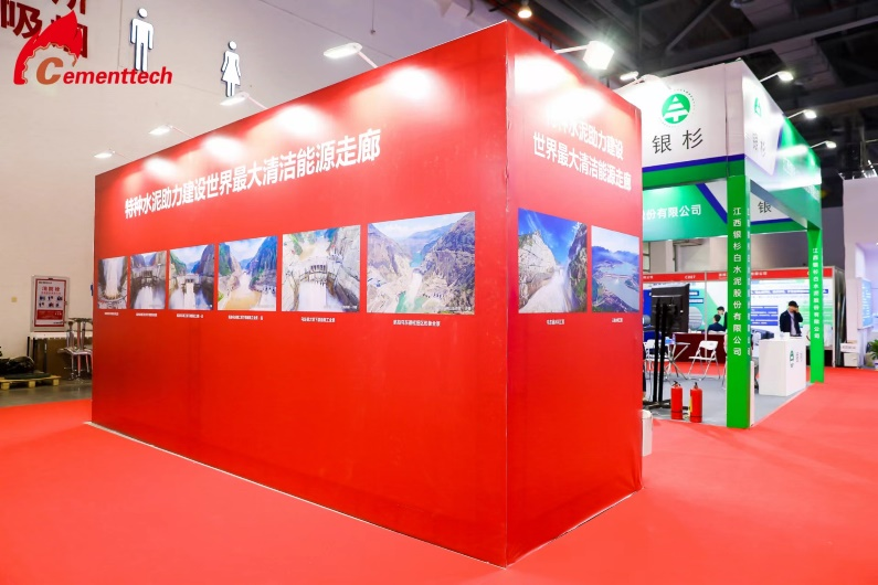 特种水泥展区以“特种水泥助力建设世界最大清洁能源走廊”为主题,通过图片展示特种水泥在乌东德水利工程、三峡水利工程、白鹤滩水电工程的应用,同时特种水泥企业江西银杉携带他们的产品现场亮相。