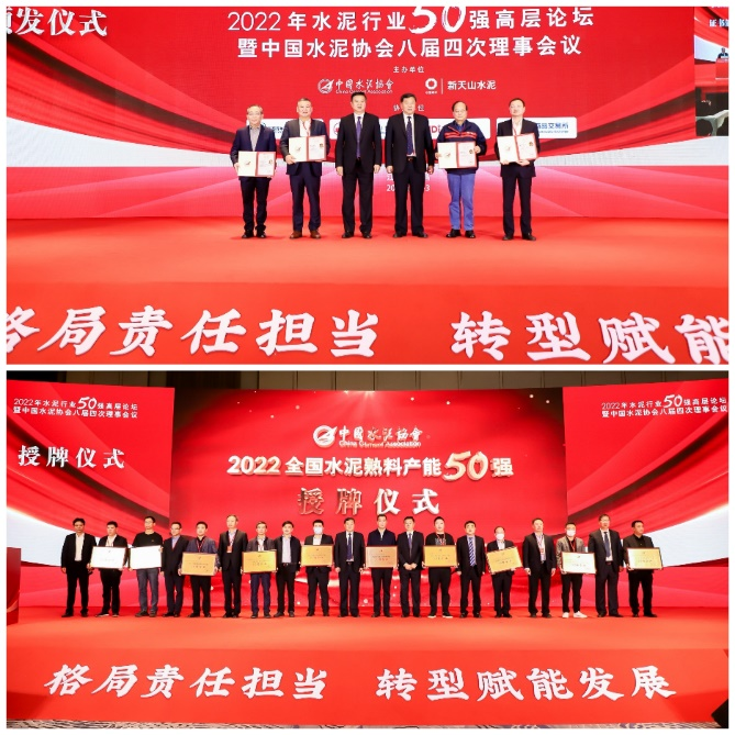 会议期间还举办了隆重的协会新增补变更副会长、新增常务理事单位颁发证书仪式以及2022年全国水泥熟料产能50强授牌仪式。
