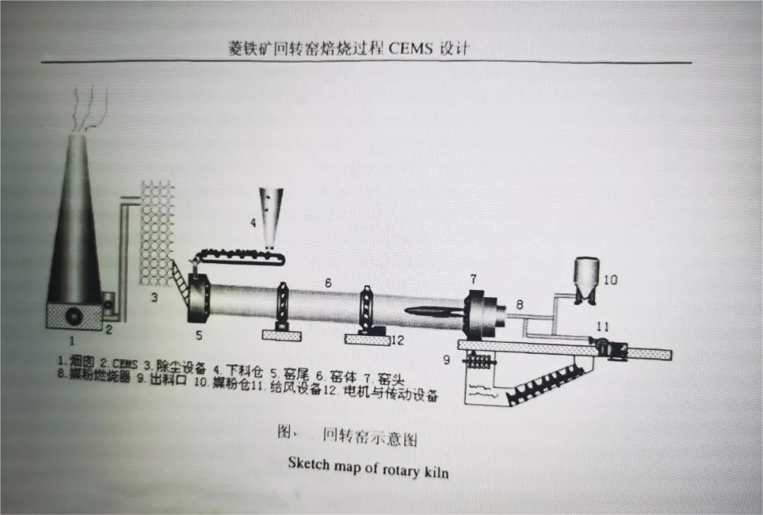 (2)物料的路线分析:菱铁矿进行破损后掉入下料仓,经传送带传送掉入窑尾。随着窑体的旋转,矿石得到充分的搅拌,在窑尾预热。到煅烧带前,物料经过脱水和预热,在燃烧带分解成磁铁矿,然后经过破损掉入水中速冷,再运送到选矿厂选矿,进行后续的冶炼过程 。回转窑磁化焙烧时间一般为60-80min左右 .