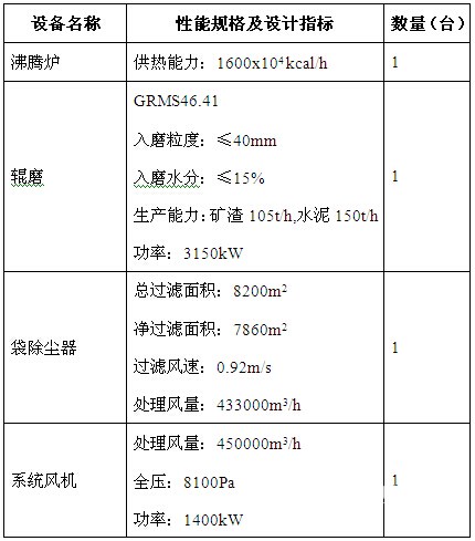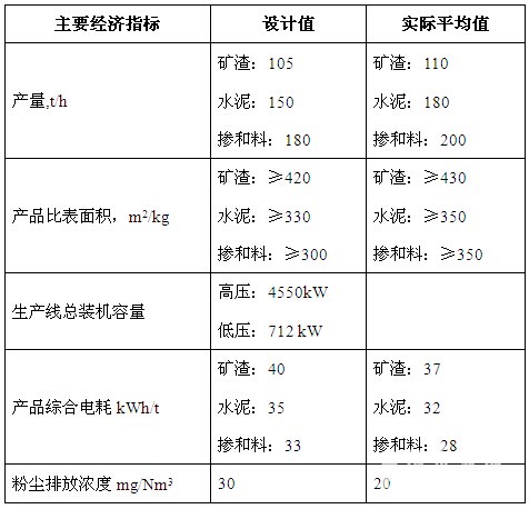 该生产线是按照年产60万吨矿粉/100万吨水泥设计,粉磨系统主要设备配置及性能参数见表1:
