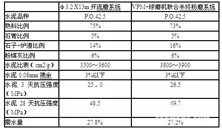 关于水泥质量,我们与该厂老生产线(φ3.2 X13m开流磨系统)所生产的水泥进行对比,结果如下: