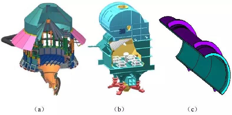 (a)为竖式预热器,(b)为竖式冷却器,(c)为回转窑